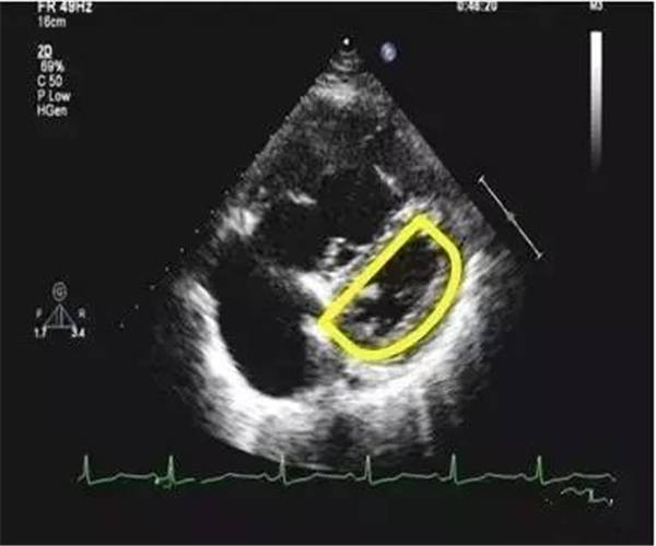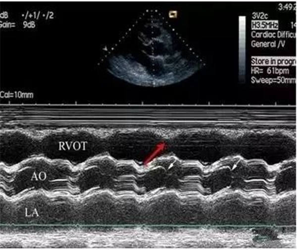 主要表現為左室短軸切面“D”型改變。此時,室間隔偏向左室側,運動平直,收縮期運動幅度減低,與右室前壁及左室后壁運動不同步。