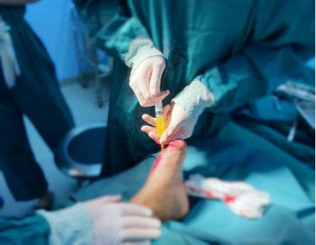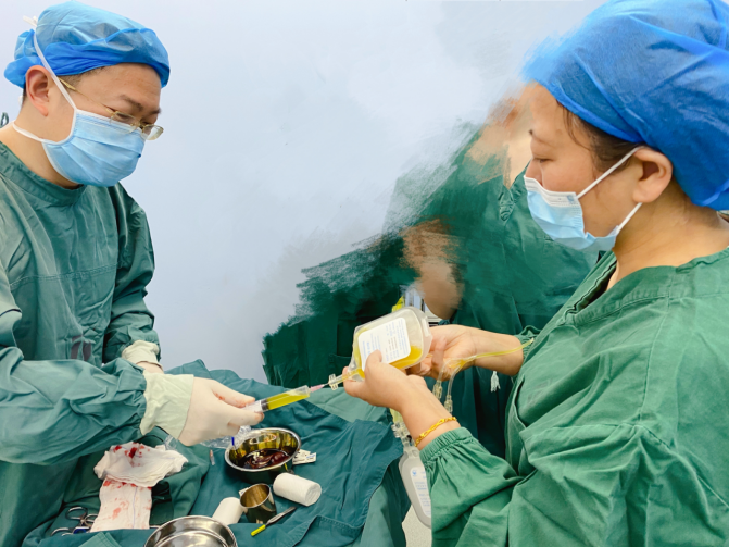 80歲的劉老太太,患有高血壓、糖尿病十多年了,最近,因為左下肢皮膚破潰嚴重,來到我院燒傷整形科接受治療,醫生為劉老太太剪除了第1-3趾根部壞死的骨質和黑變的創緣及創面內失活的組織,并進行抗感染、降糖、清創換藥、負壓引流治療。考慮到老人的基礎疾病較多,身體條件比較差,為了促進創面更好地愈合,燒傷整形科醫生聯系了輸血科,合作為患者制備PRP。