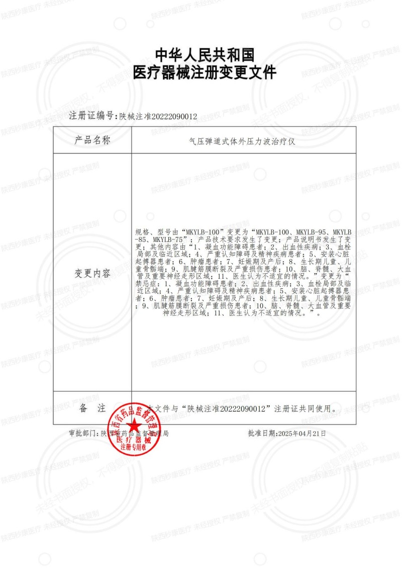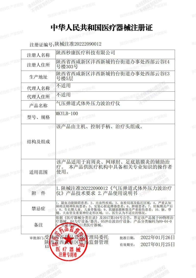 醫(yī)療器械注冊證編號:陜械注準(zhǔn)20222090012