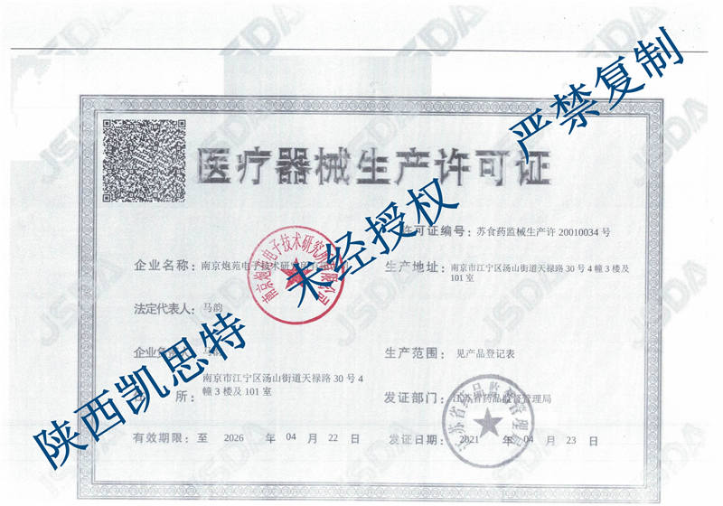 醫療器械生產許可證編號:蘇食藥監械生產許20010034號