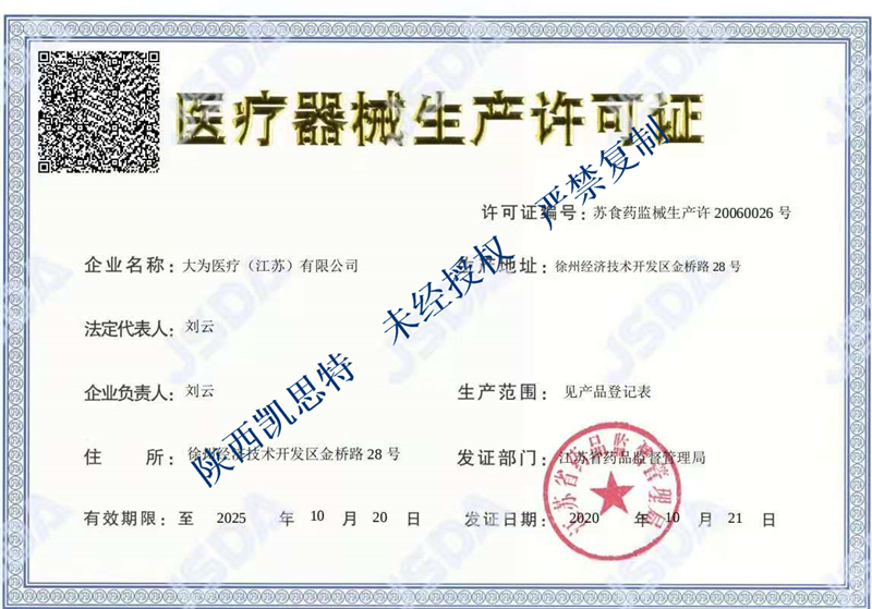 醫療器械經營許可證編號:陜西咸藥監械經營許20230021號